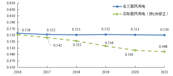 圖6 居民電價(jià)名義與實(shí)際變化趨勢圖