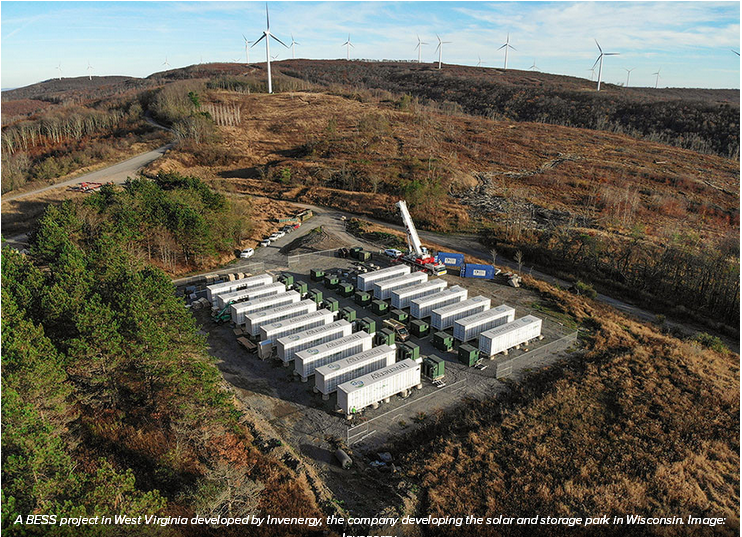 Invenergy公司在西弗吉尼亞州開發(fā)的電池儲能項目,該公司還在威斯康星州開發(fā)太陽能+儲能項目
