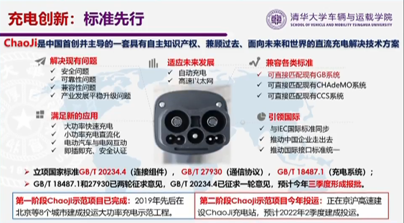 他還指出,針對(duì)充電標(biāo)準(zhǔn)與需求不適配的問題,現(xiàn)階段由中國(guó)首創(chuàng)并主導(dǎo)的一套具有自主知識(shí)產(chǎn)權(quán),兼顧過去,面向未來和世界的直流充電解決方案——ChaoJi第一階段示范項(xiàng)目已完成,第二階段如京滬高速示范項(xiàng)目預(yù)計(jì)在今年第二季度建成投運(yùn)。且相關(guān)標(biāo)準(zhǔn)GB/T 18487.1和27930已經(jīng)過兩輪征求意見,GB/T 20234.4也已征求一輪意見,預(yù)計(jì)在今年第三季度形成報(bào)批。