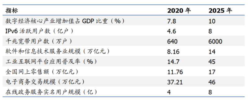 表1 “十四五”時期數(shù)字經(jīng)濟(jì)發(fā)展主要指標(biāo)(數(shù)據(jù)來源:中國政府網(wǎng)站)