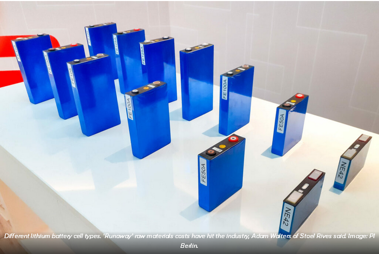 Walters在接受采訪時說,“對于很多電池儲能項目來說,電池成本上漲過高,難以接受。因為材料價格非常高,這意味著總體價格上漲了20%到30%。”