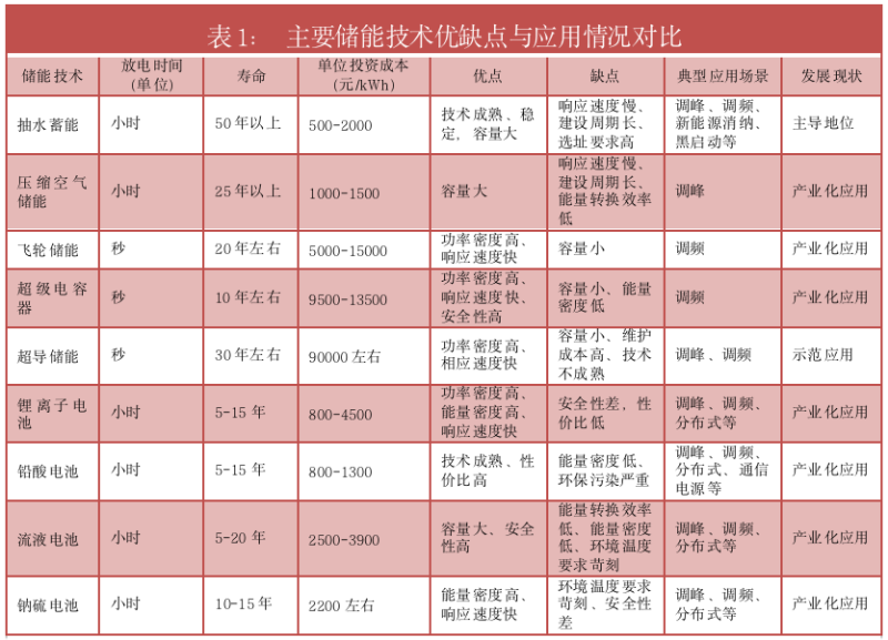 2、不同儲(chǔ)能方式優(yōu)缺點(diǎn)和應(yīng)用情況的比較