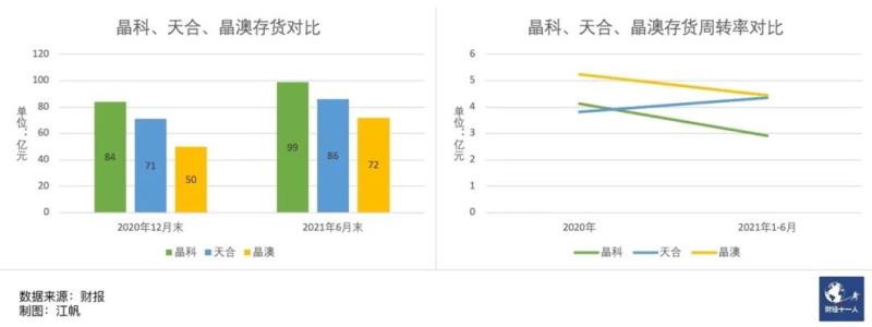 晶科的存貨高于同行,而存貨周轉(zhuǎn)率低于同行,主要原因是去年組件出貨不及同行。2021年,晶科全球組件出貨排名位次下滑至第4。