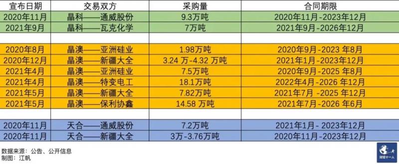 從已公開的硅料長單簽署情況來看,鎖料量晶澳(54.3萬噸)>晶科(16.3萬噸)>天合(10.96萬噸),分別約可滿足213GW、64GW、43GW硅片的使用。單從長協(xié)簽署情況來看,天合并沒有展現(xiàn)出比晶科更強的鎖料能力。