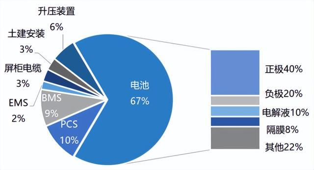當前,電化學儲能正掀起一場行業(yè)颶風。起風時,飛機需要尋找到好的位置出發(fā),分辨出好的航向,而儲能行業(yè),則是要選擇合適的技術路徑。儲能產(chǎn)業(yè)鏈主要包括上游設備廠商、中游系統(tǒng)集成及安裝、下游終端客戶。其中儲能設備系統(tǒng)又包括電池、BMS、PCS 等多個部分,電池是核心部分,占到了成本的 67%。由此可見,電池是未來產(chǎn)業(yè)鏈技術迭代和降本的主要環(huán)節(jié)。