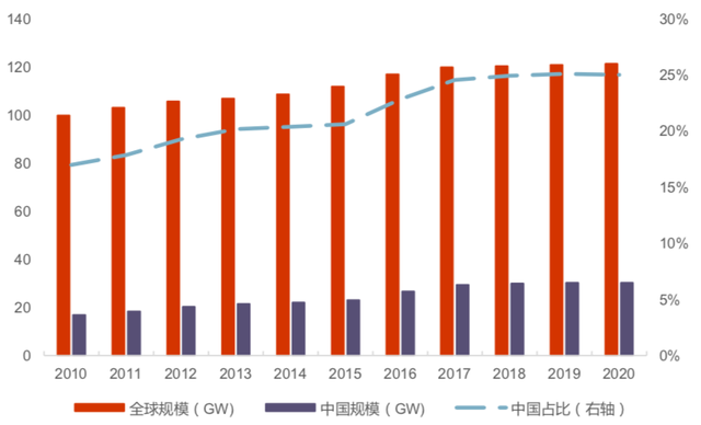 全球及中國抽水蓄能裝機(jī)規(guī)模增勢,來源:國際可再生能源機(jī)構(gòu)、光大證券研究所
