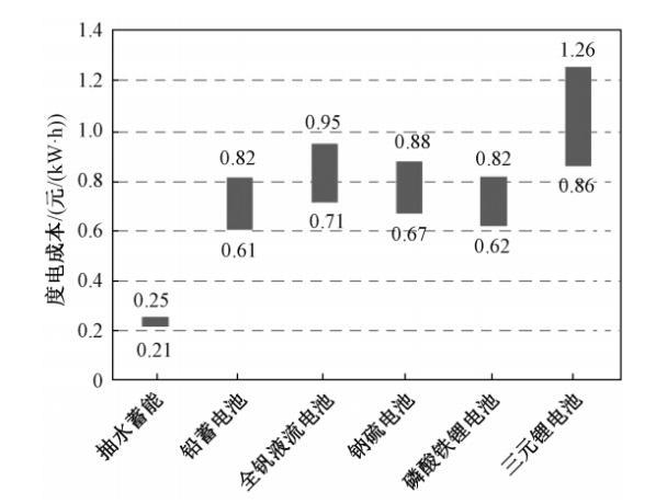 幾種儲能技術(shù)的度電成本,來源:《儲能的度電成本何里程成本分析》