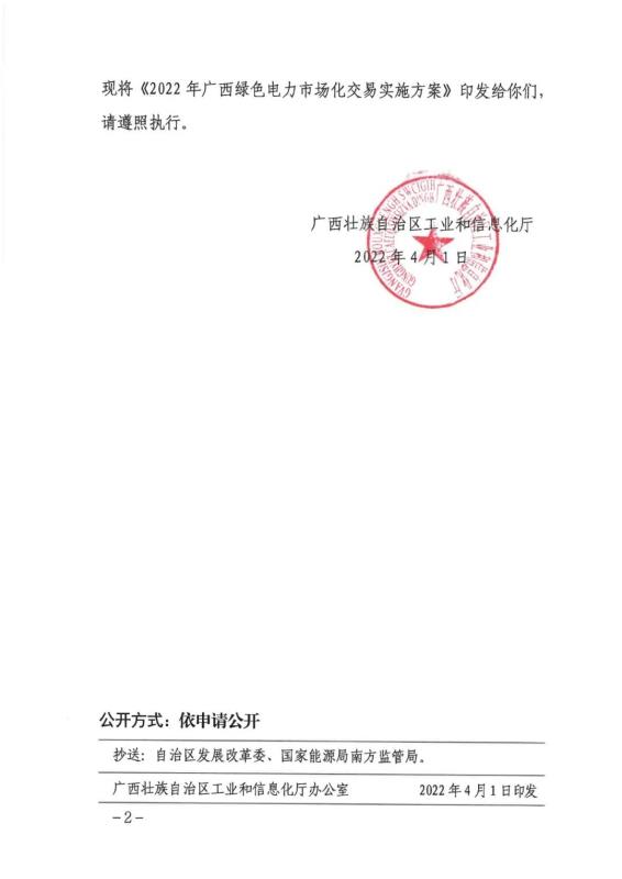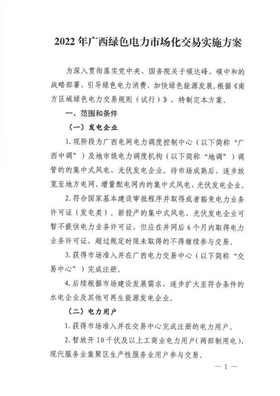 中國(guó)儲(chǔ)能網(wǎng)訊:4月1日,廣西工業(yè)和信息化廳印發(fā)《2022年廣西綠色電力市場(chǎng)化交易實(shí)施方案》,明確了廣西自治區(qū)綠色電力交易的相關(guān)細(xì)節(jié)問(wèn)題。