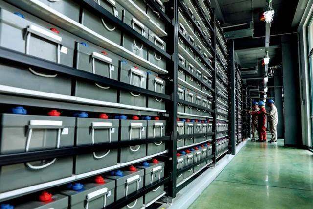 2020年10月29日,浙江長興縣,在10千伏長興雉城儲(chǔ)能電站內(nèi),工作人員在蓄電池室檢測并網(wǎng)后單個(gè)蓄電池電壓。圖/新華