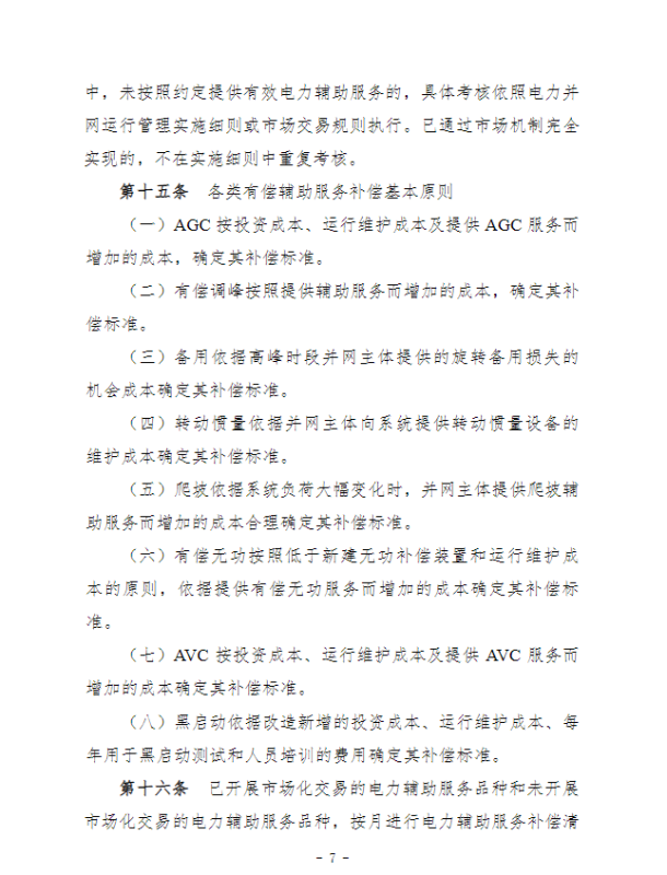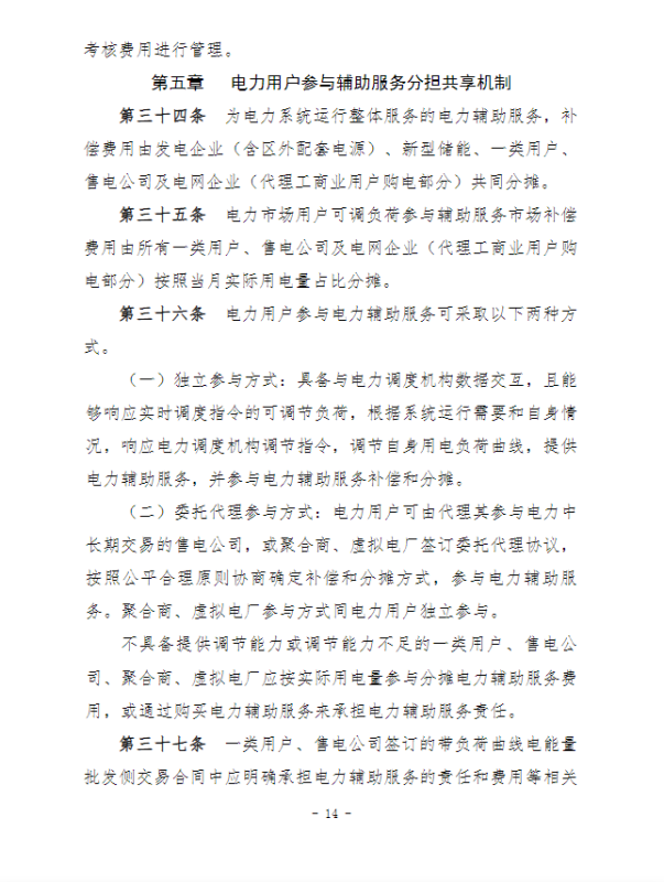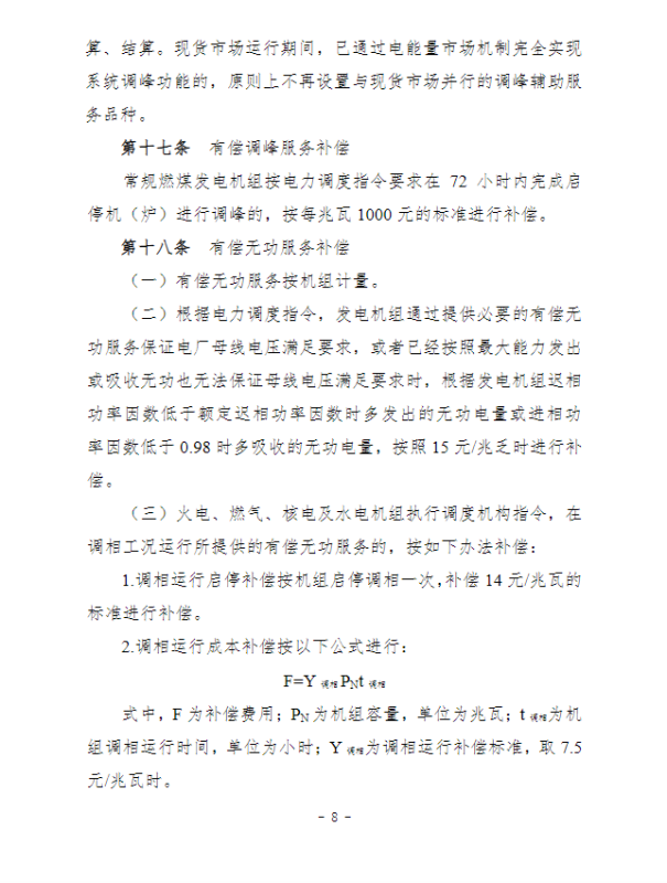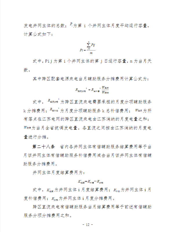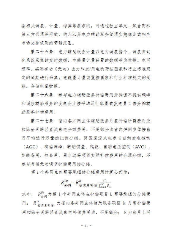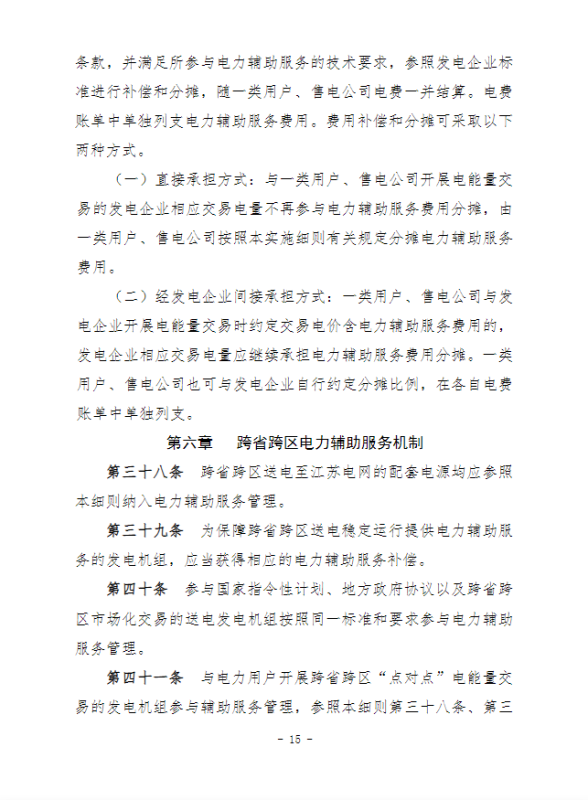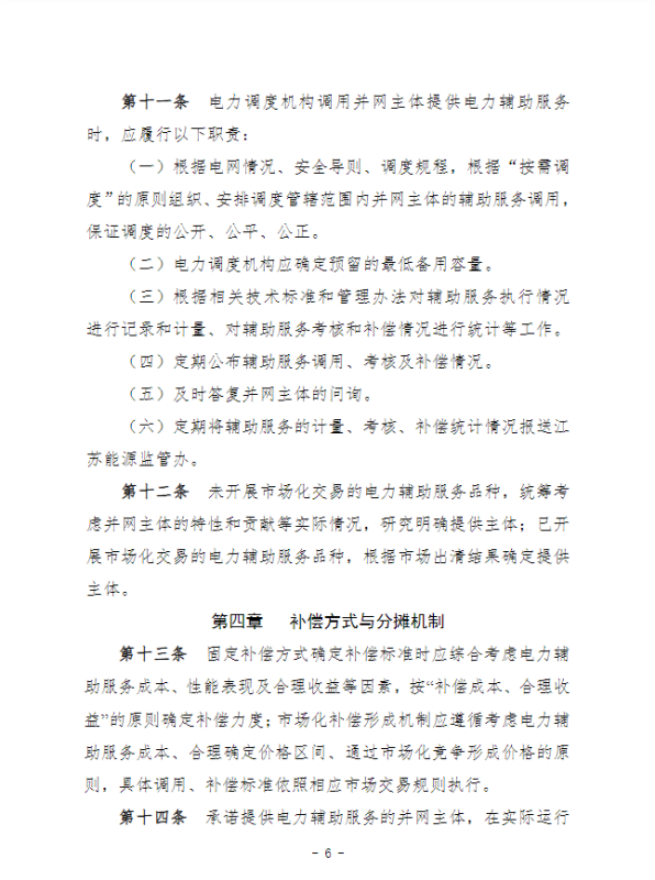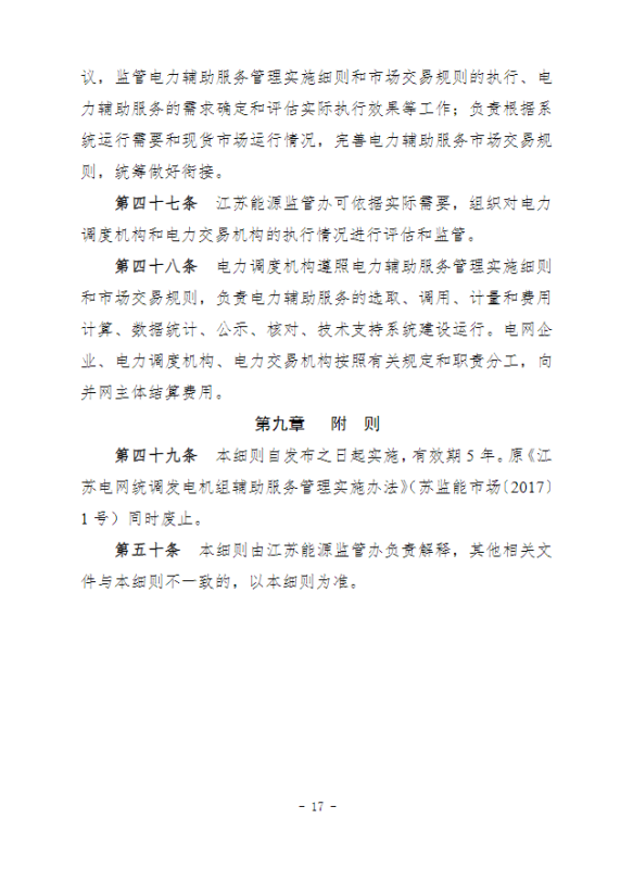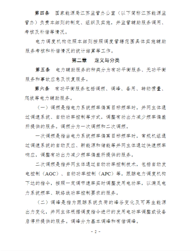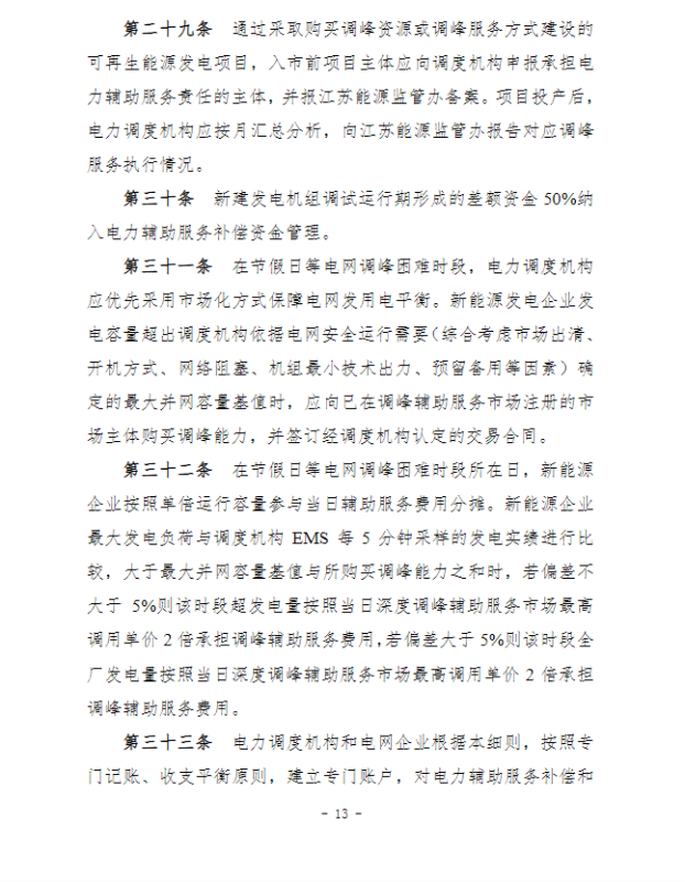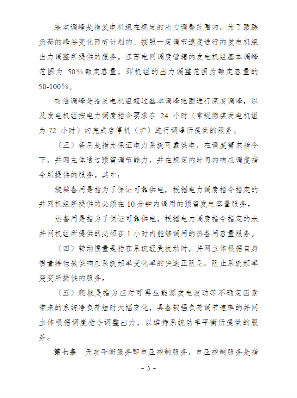 江蘇電力輔助服務(wù)管理實施細則(征求意見稿)