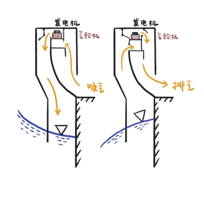 具體來講是利用波浪產(chǎn)生的水面位置變化引起容器內(nèi)空氣容積變化,通過壓縮容器內(nèi)的空氣驅(qū)動葉輪,進而帶動發(fā)電裝置發(fā)電。