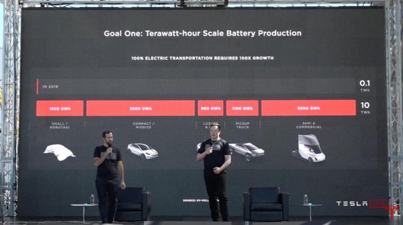 2020 特斯拉電池日,馬斯克提出了 TWh 級別的電池生產(chǎn)目標(biāo)