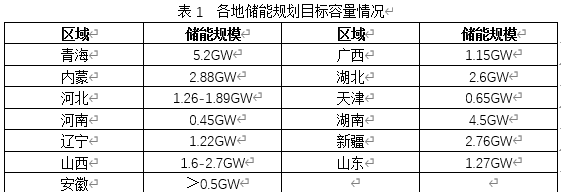 截至目前,據(jù)不完全統(tǒng)計(jì),全國(guó)已有十余省市正式對(duì)外公布了儲(chǔ)能發(fā)展規(guī)劃,規(guī)劃的新型儲(chǔ)能總裝機(jī)規(guī)模已超過30GW(部分?。ㄊ校┮?guī)模如表1所示)。