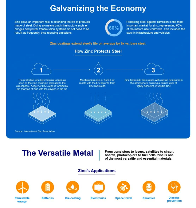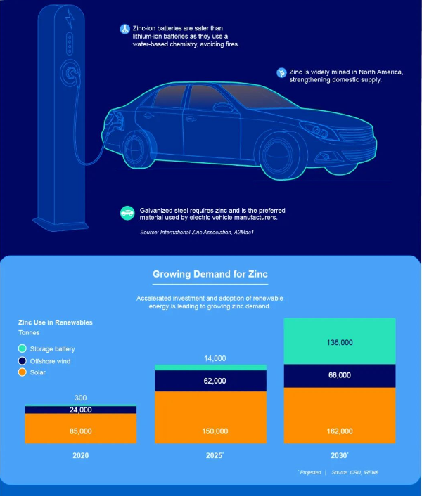 鋅是一個(gè)每年400億美元的市場。與其他金屬不同,鋅天然資源豐富,可以滿足未來幾代人的需求。隨著世界向低碳經(jīng)濟(jì)轉(zhuǎn)型,鋅將繼續(xù)在支持清潔能源技術(shù)方面發(fā)揮關(guān)鍵作用。