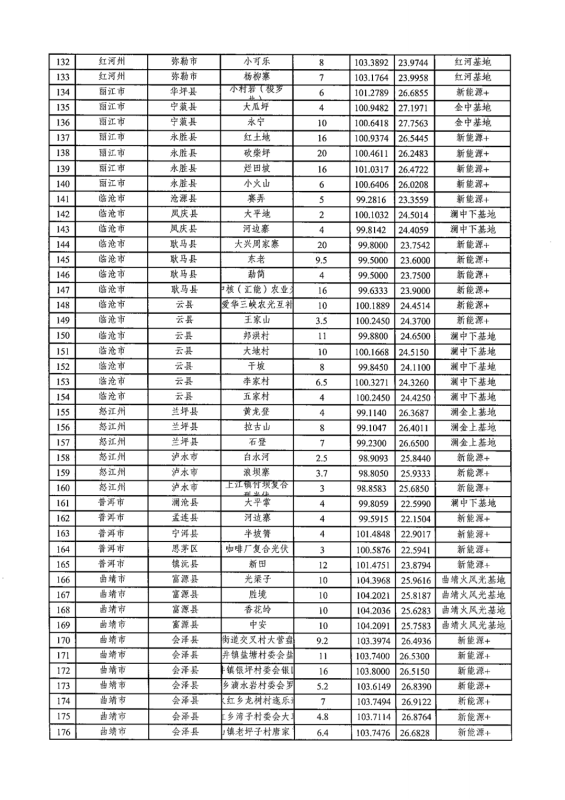 5450萬(wàn)千瓦項(xiàng)目主要包括紅河基地636萬(wàn)千瓦、金下基地423萬(wàn)千瓦、金中基地285萬(wàn)千瓦、瀾金上基地228萬(wàn)千瓦、瀾中下基地346萬(wàn)千瓦、曲靖火風(fēng)光基地292萬(wàn)千瓦、新能源+3240萬(wàn)千瓦。