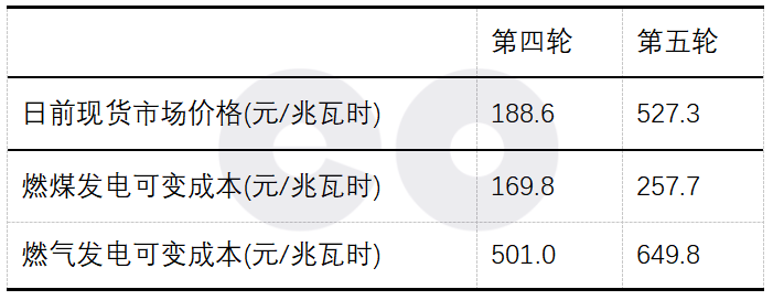 表1列出了第四、第五輪試運行期間的燃料成本以及平均市場價格。值得注意的是,由于廣東的容量補償機制,燃氣機組每發(fā)1MWh的電能量能獲得200元的補貼,因此燃氣機組的真實邊際成本應當比表格中的數(shù)字低200元。研究發(fā)現(xiàn),相較于第四輪試運行,第五輪市場價格增量的65%來自剩余負荷的增加,其余大部分則來自燃料成本的增加。