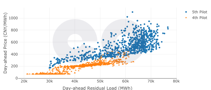 圖6 日前現(xiàn)貨市場價格與剩余負荷的關系