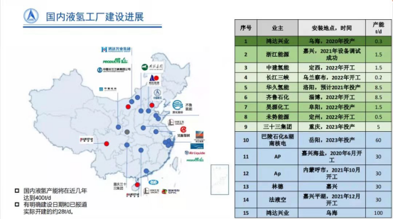 2020年以來,隨著國家對液氫項目的重視加大,相關政策及項目不斷落地,我國液氫產業(yè)正蓄勢待發(fā)。據(jù)了解,國內液氫產能將在幾年內達到400T/d,目前有明確建設日期和已經(jīng)開建的項目約28T/d。
