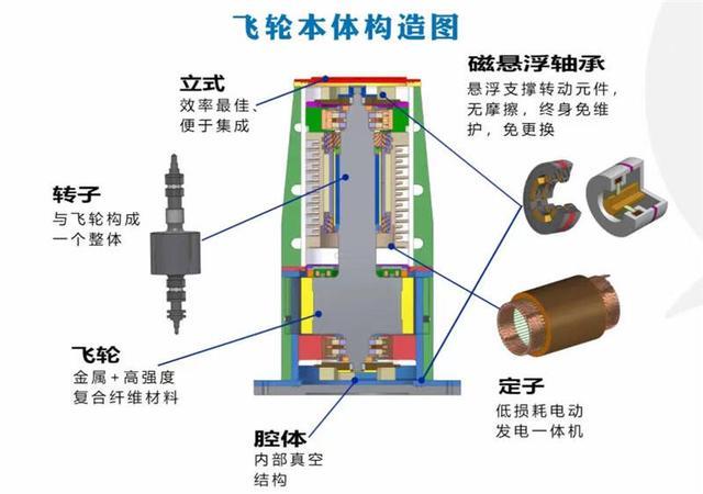 飛輪儲(chǔ)能屬于物理儲(chǔ)能,采用磁懸浮技術(shù),飛輪轉(zhuǎn)子在真空室內(nèi),無(wú)風(fēng)阻環(huán)境下運(yùn)行。飛輪儲(chǔ)能裝置安裝于軌道交通牽引變電所內(nèi),當(dāng)列車進(jìn)站制動(dòng)時(shí),飛輪吸收能量,將電能轉(zhuǎn)換為動(dòng)能,轉(zhuǎn)速高達(dá)每分鐘20000轉(zhuǎn);當(dāng)列車出站加速時(shí),飛輪釋放能量,將動(dòng)能轉(zhuǎn)化為電能,釋放能量供列車使用,具有極佳的節(jié)能和穩(wěn)壓效果。