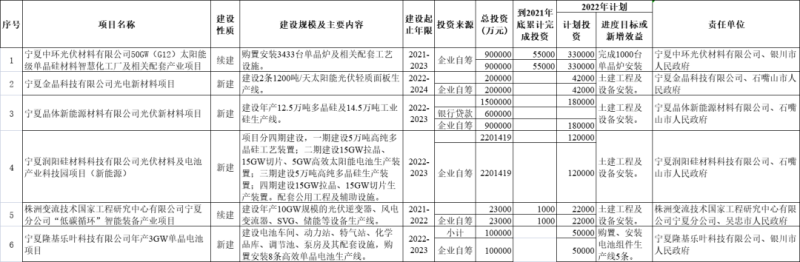 在重點制造業(yè)方面,中環(huán)在寧夏續(xù)建的50GW單晶硅片項目(G12),預計今年完成1000臺單晶爐的安裝,東方希望的12.5萬噸多晶硅新建產(chǎn)能、潤陽新能源5萬噸多晶硅產(chǎn)能、株洲中車的10GW逆變器項目、寧夏金晶科技的1200噸/天太陽能光伏輕質(zhì)面板生產(chǎn)線、寧夏隆基的3GW單晶電池項目。