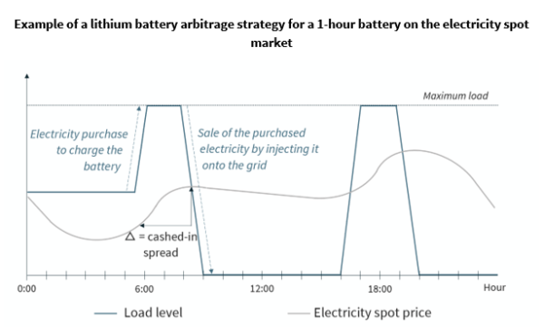在法國,這些靈活性資源的開發(fā)得到了開放新市場的支持,以獲得更多的收入。而對電價預測表明,鋰離子電池儲能系統(tǒng)不太可能僅基于現(xiàn)貨市場上的買賣套利策略獲利。在這樣的策略中,儲能系統(tǒng)在電價低時購買和儲存電力,然后在電價上漲時將其出售并注入電網(wǎng),例如峰值電力需求期間。