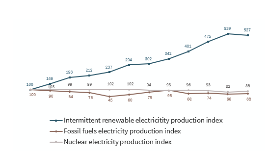 間歇性可再生能源不可避免地滲透到歐洲電力結(jié)構(gòu)中,對電網(wǎng)的穩(wěn)定性構(gòu)成了越來越大的挑戰(zhàn)。而在歐洲,可再生能源的發(fā)展速度遠快于電力消費的增長。而在法國,可再生能源自從2005年至2010年以來一直沒有太大增長??稍偕茉吹某霈F(xiàn)比傳統(tǒng)的可控電源要晚(例如天然氣、石油和煤炭被稱為“可控電源”,核電也是可控的,但由于慣性強而需要更長的時間):