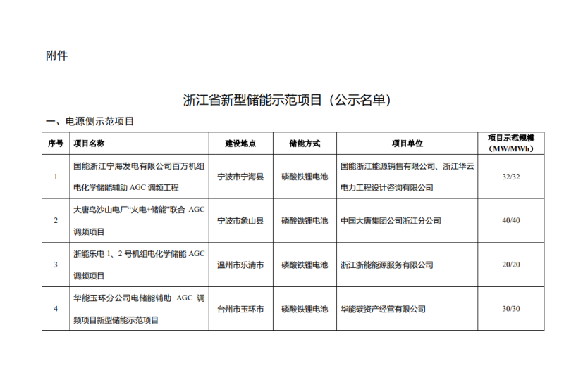 附件:浙江省新型儲能示范項(xiàng)目(公示名單)