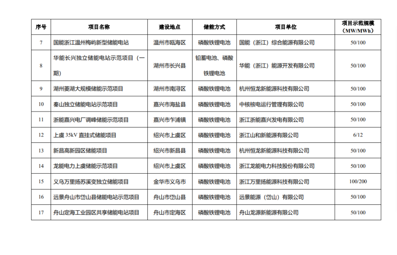 省發(fā)展改革委關(guān)于浙江省新型儲能示范項(xiàng)目的公示