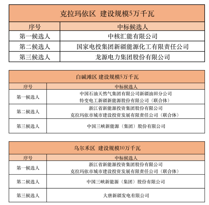 第一候選人:浙江省新能源投資集團股份有限公司+克拉瑪依市城市建設(shè)投資發(fā)展有限責任公司(聯(lián)合體)
