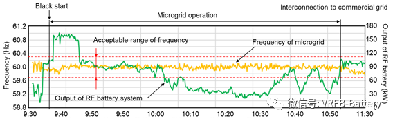 盡管微電網(wǎng)中電力需求與太陽能系統(tǒng)的電力輸出總是波動,但VRF電池可以通過充電/放電來穩(wěn)定配電線路的電壓和頻率,以維持電力供需平衡。