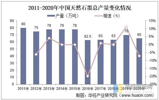 中國是全球最大的石墨生產(chǎn)國,2020年中國石墨產(chǎn)量為65萬噸,約占全球石墨總產(chǎn)量的60%左右。2020年,中國已探明石墨儲量7300萬噸,占全球儲量的23%,位居全球第二。此外,中國的電池級石墨供應(yīng)量占全球總量約85%。