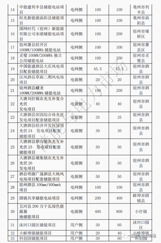 電網(wǎng)側(cè)強(qiáng)調(diào)集中式儲能電站,淮北、宿州、蚌埠、亳州等地區(qū),以及合肥、滁州等負(fù)荷中心區(qū)域,是電網(wǎng)側(cè)獨立儲能電站重點發(fā)展區(qū)域。