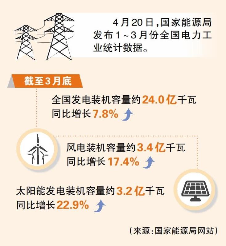 國家能源局:截至3月底全國發(fā)電裝機容量同比增長7.8%