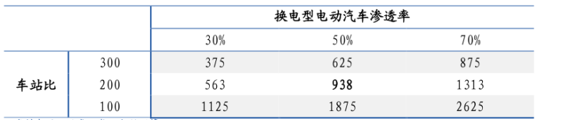 測(cè)算方法也并不復(fù)雜,就是按照目前車樁比的需求缺口,再考慮到后續(xù)換電車型滲透率的持續(xù)提升即可。根據(jù)國(guó)盛證券的預(yù)測(cè),換電站的空間在千億規(guī)模級(jí)別。