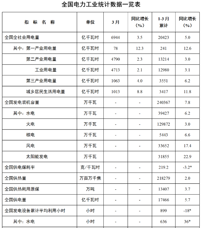 1-3月份,全國(guó)發(fā)電設(shè)備累計(jì)平均利用899小時(shí),比上年同期減少18小時(shí)。其中,核電1847小時(shí),比上年同期增加30小時(shí);風(fēng)電555小時(shí),比上年同期減少65小時(shí)。