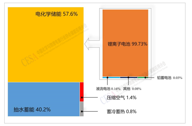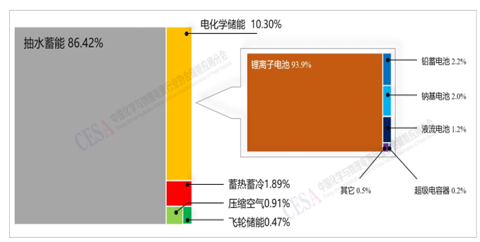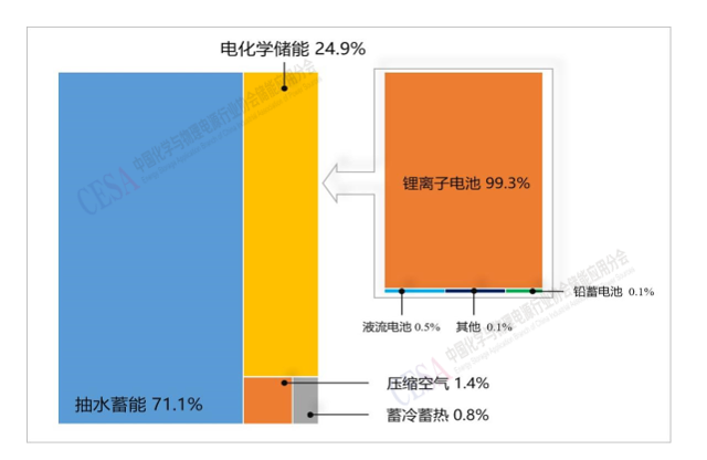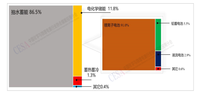 圖表2–1 中國儲能技術(shù)裝機(jī)功率比例