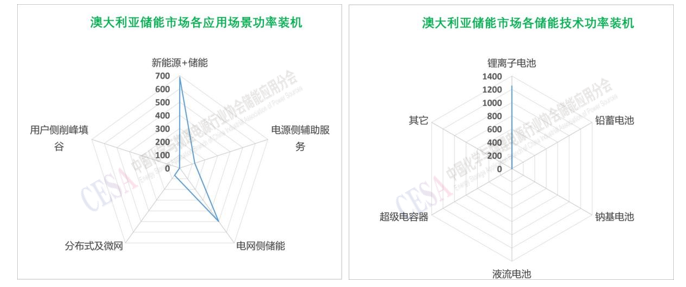 圖表1–8 澳大利亞電化學(xué)儲能市場各應(yīng)用場景和技術(shù)裝機(jī)