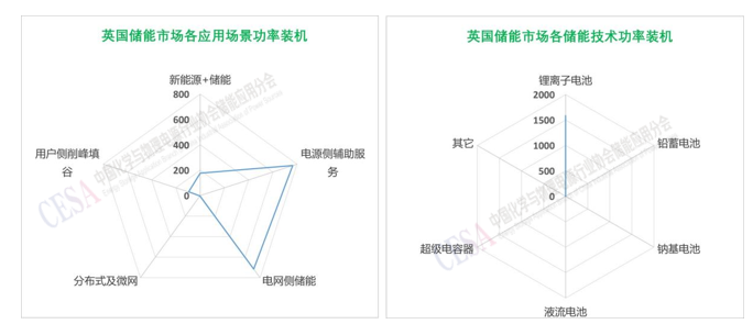 圖表1–7 英國電化學(xué)儲能市場各應(yīng)用場景和技術(shù)裝機(jī)