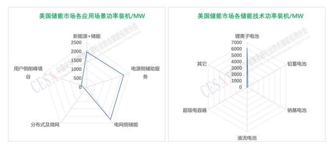 圖表1–5美國電化學(xué)儲能市場各應(yīng)用場景和技術(shù)裝機(jī)