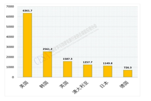 全球電化學(xué)儲能市場典型國家包括美國、韓國、英國、澳大利亞、日本、德國等,上述國家2021年電化學(xué)儲能裝機(jī)規(guī)模分別為6361.7 MW、2561.2 MW、1587.3 MW、1257.7 MW、1149.8 MW、726.3MW。
