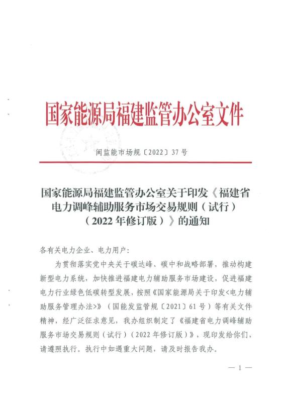中國儲能網(wǎng)訊:4月22日,福建省能監(jiān)辦發(fā)布《福建省電力調(diào)峰輔助服務(wù)市場交易規(guī)則(試行)(2022年修訂版)》的通知。