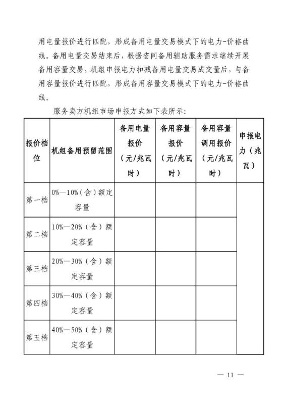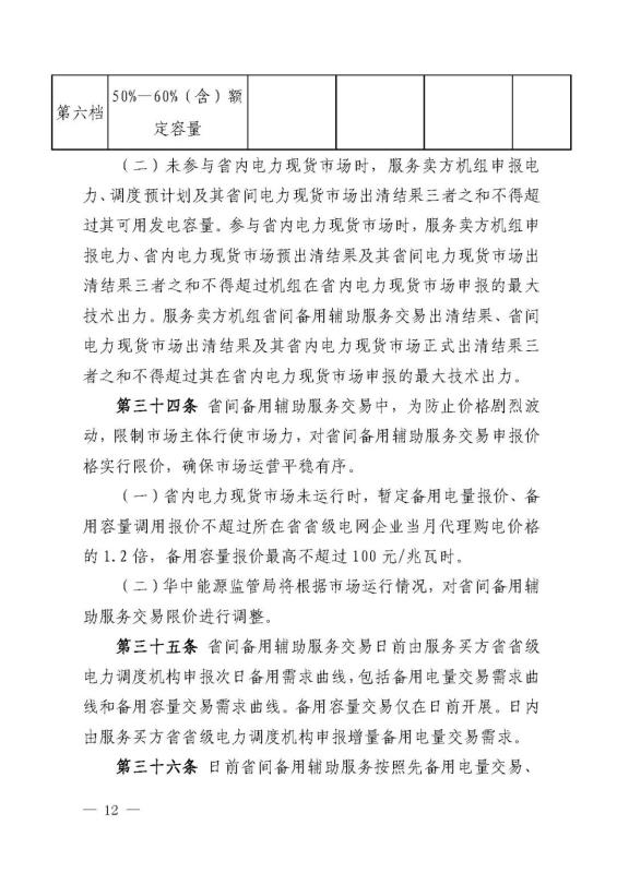 省內(nèi)電力現(xiàn)貨市場未運行時,暫定備用電量報價、備用容量調(diào)用報價不超過所在省省級電網(wǎng)企業(yè)當(dāng)月代理購電價格的1.2倍,備用容量報價最高不超過100元/兆瓦時。