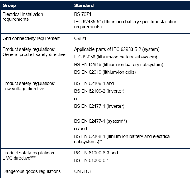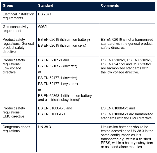 英國(guó)對(duì)電池儲(chǔ)能系統(tǒng)的安全要求可分為電氣安裝要求、電網(wǎng)連接要求、產(chǎn)品安全監(jiān)管要求以及危險(xiǎn)品監(jiān)管要求。