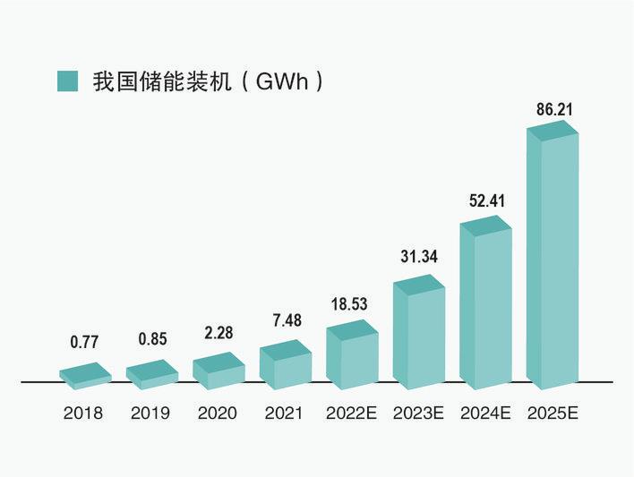 電力行業(yè)通常利用儲(chǔ)能裝機(jī)量所達(dá)到的能量度量單位(GWh)作為衡量產(chǎn)業(yè)規(guī)模的單位,預(yù)計(jì)2022年我國(guó)儲(chǔ)能裝機(jī)規(guī)模將達(dá)到18.53GWh。在煤電水電時(shí)代,我國(guó)儲(chǔ)能產(chǎn)業(yè)規(guī)模較小,進(jìn)入新能源時(shí)代后,其產(chǎn)業(yè)規(guī)模實(shí)現(xiàn)大幅增長(zhǎng)。