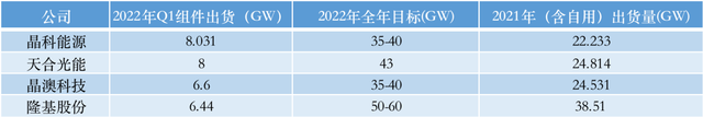 從全年來看,四家企業(yè)將2022年組件目標提升到去年出貨量的130%-180%之間。同樣可以看出下游需求火熱。