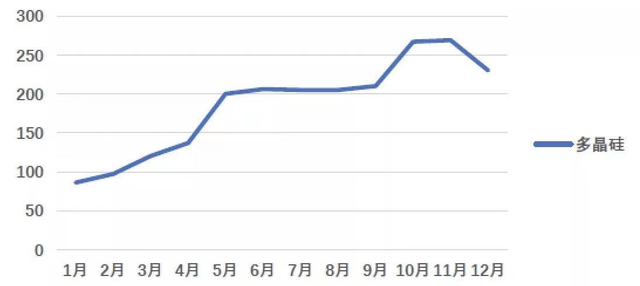 相比中國光伏行業(yè)協(xié)會數(shù)據(jù),PV_Infolink數(shù)據(jù)更為直觀:光伏多晶硅致密料價格從2021年1月6日的84元/公斤,增長至12月29日的230元/公斤,區(qū)間內(nèi)最高價格到了269元/公斤。