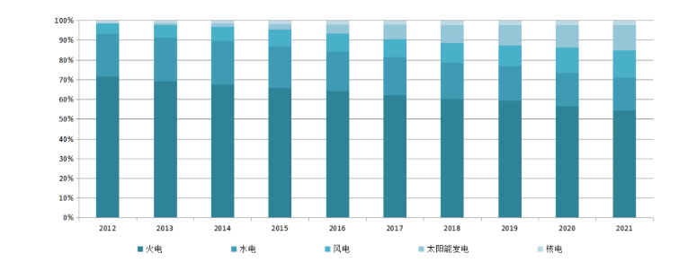 2012~2021年全國電力裝機(jī)結(jié)構(gòu)