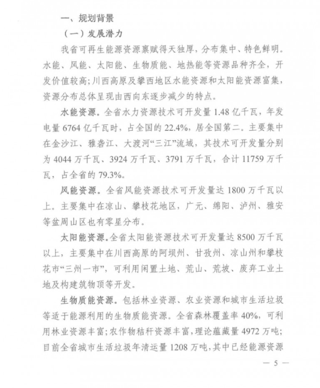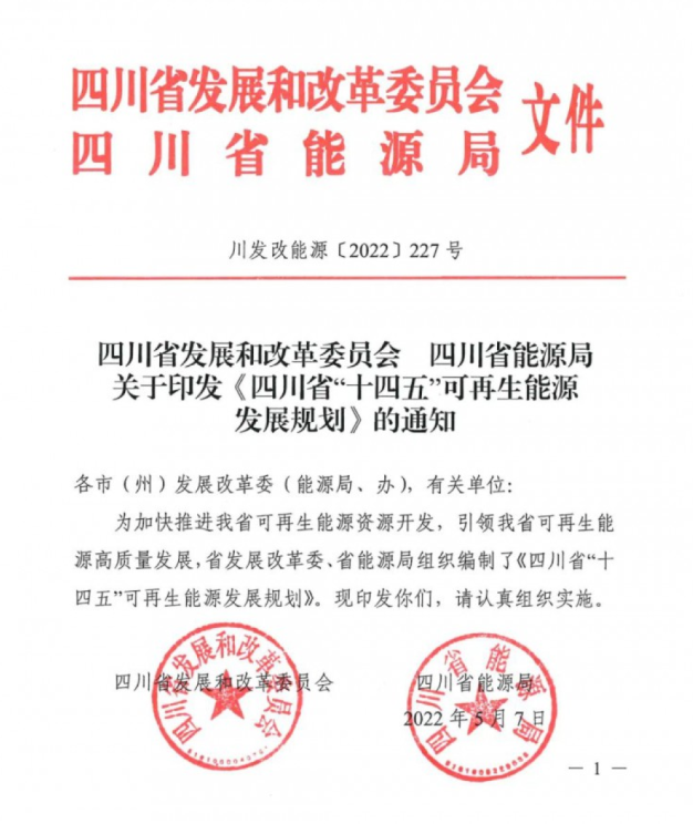 中國(guó)儲(chǔ)能網(wǎng)訊:5月7日,四川省發(fā)改委、能源局印發(fā)了關(guān)于《四川省“十四五”可再生能源發(fā)展規(guī)劃》的通知(以下簡(jiǎn)稱(chēng)“規(guī)劃”)。