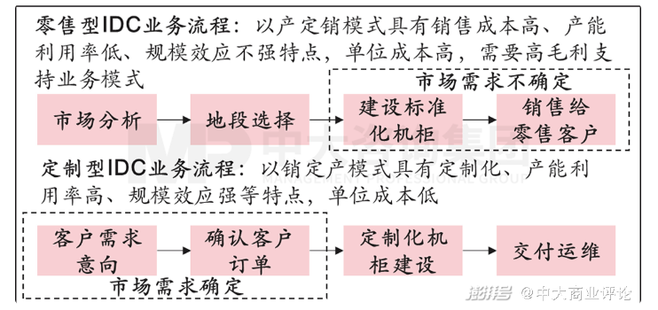 圖7 數(shù)據(jù)中心不同銷售模式業(yè)務(wù)流程,資料來(lái)源:數(shù)據(jù)中心上市公司年報(bào)