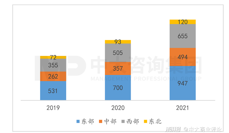 圖3 各地區(qū)移動(dòng)互聯(lián)網(wǎng)接入流量(億GB),數(shù)據(jù)來(lái)源:《2021年通信業(yè)統(tǒng)計(jì)公報(bào)》